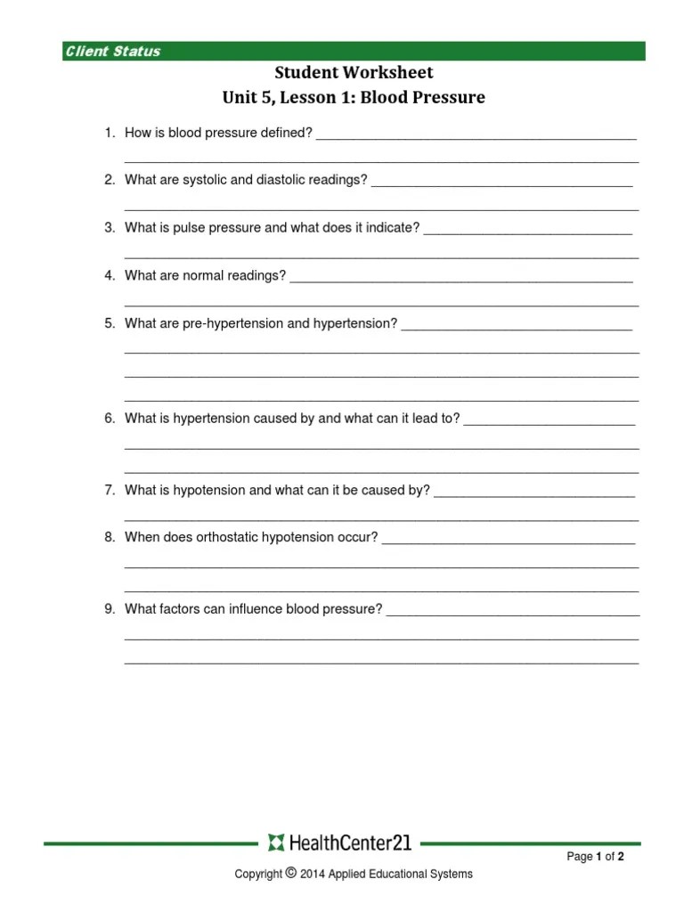 Blood Pressure Worksheet : Breaking News English 2 Page Mini Lesson Blood Pressure :. Blood flows through your arteries, supplying your body's organs with the oxygen and nutrients they need to function properly. Also known simply as blood sugar, blood glucose provides the fuel your body needs to power the brain, heart and muscles. Your blood pressure readings are useful indicators of your cardiovascular system's overall health. Review this information about t. In 2014, high blood pressure was.